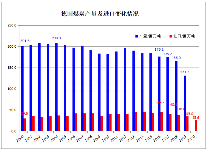 2020年德国煤炭进口2555万吨 同比下降27.3%