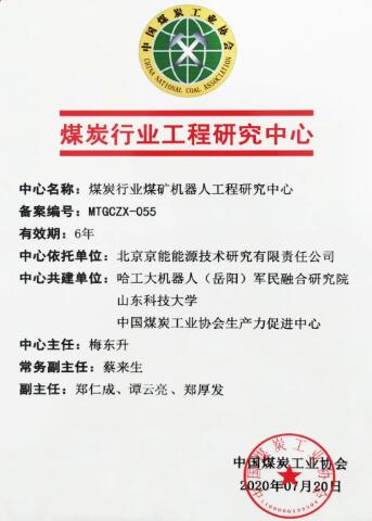 日前,在经过形式审查、现场考察、专家评审和网上公示等评审程序后,由京能能源研究院申报的煤矿机器人工程研究中心获得中国煤炭工业协会的认定。这是京能集团在煤矿机器人研究领域的重大突破,将有力地推进集团科技创新工作迈上新台阶。