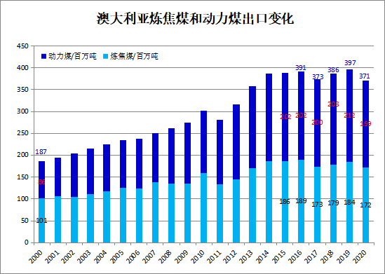 但是,《资源和能源季报》还是预测,2021年澳大利亚煤炭出口将复苏反弹增长,预计全年煤炭出口可能回升到3.97亿吨,比2020年增长7%。其中,动力煤出口2.18亿吨,同比增长9.3%;炼焦煤出口1.79亿吨,同比增长4.4%。