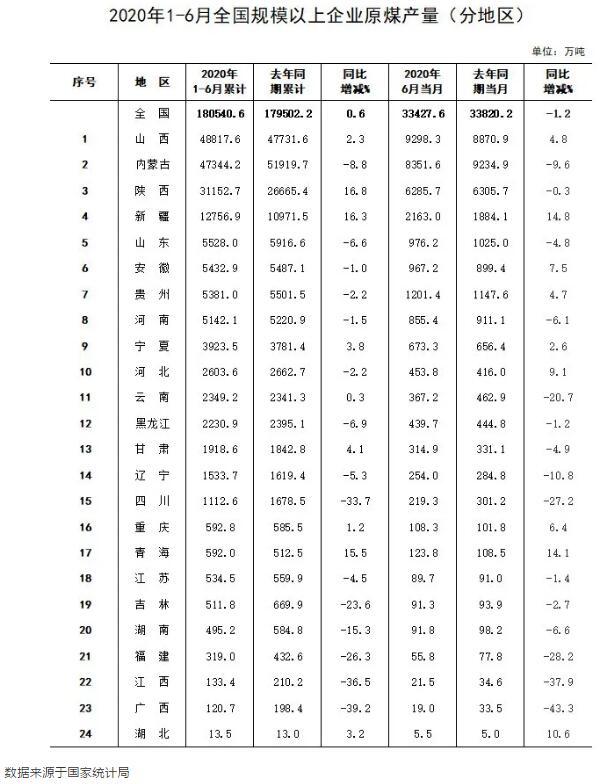 鄂尔多斯市统计局日前公布的数据显示,6月份,鄂尔多斯市规模以上工业企业生产原煤5249.9万吨,同比减少668.5万吨,下降11.3%。1-6月份,全市规模以上工业企业生产原煤29640.8万吨,下降12.3%,降幅较一季度收窄1.8个百分点。其中,民营企业累计生产原煤14141.1万吨,占全市原煤产量的47.7%,下降23.2%,降幅较一季度收窄3.8个百…