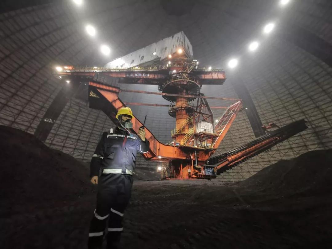 在中煤建筑安装工程集团有限公司新疆分公司将二矿运营厂,员工在1号储煤场指挥堆取料机精准装卸