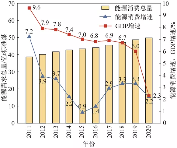 ?。?)能耗强度约束。2020年国内生产总值能耗比2019年下降0.1%。一方面,在能耗双控制度下,煤炭消费增速变缓;另一方面,资源转化效率的提高将促进煤炭需求将逐步减小。