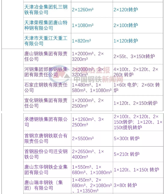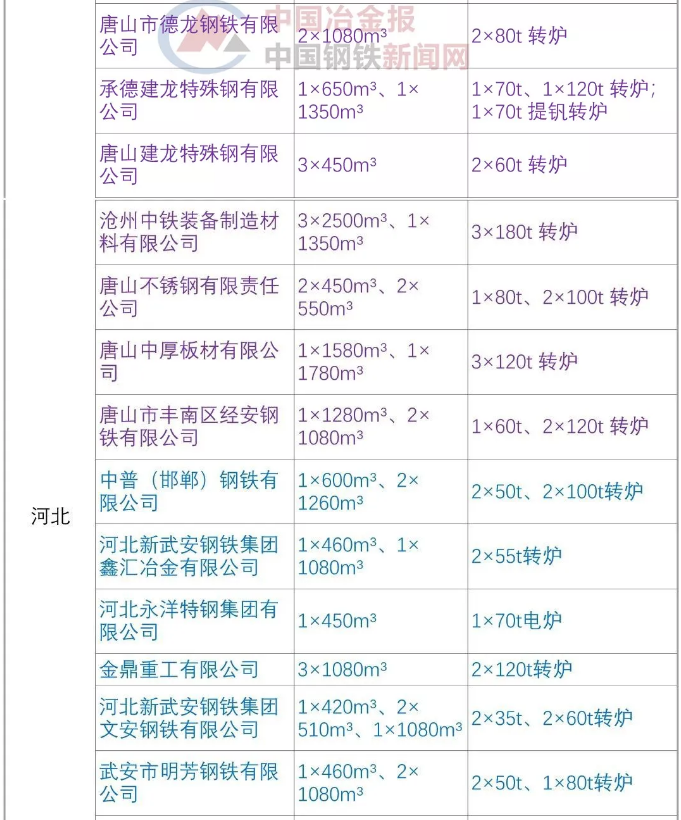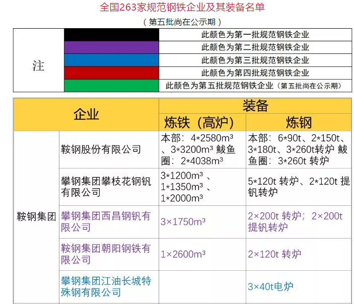 全国规范钢铁企业拟增至263家(附全名单及其装备)